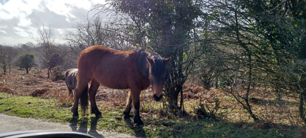 On Tuesday, because it was a day with no forecast rain, we had a day out in Tavistock, a town about 40 miles away. The highlight of this excursion is the journey across Dartmoor, past Princetown Prison, Hexworthy Bridge and Venford Reservoir. This time, there were sheep and Ponies in the road, forcing us to take care. I don’t think there are many other places in England where grazing animals have the right-of-way on the road.