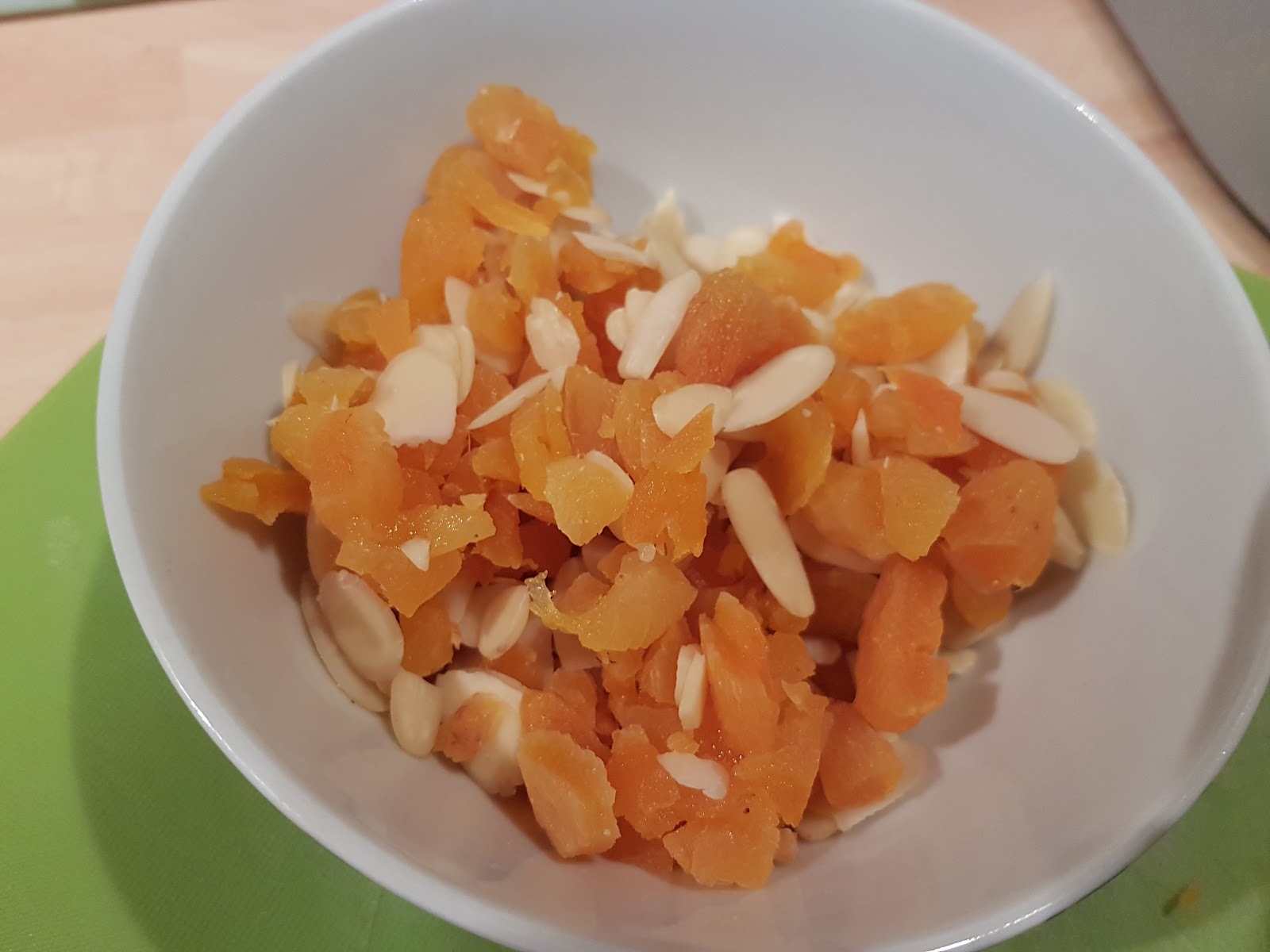 then sprinkle the chopped Apricots and Flaked Almonds.