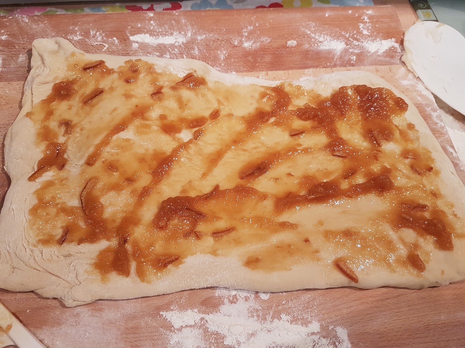 In the past, I’ve made savoury rolls, like cheese and pickle, or chorizo and sun-dried tomato, this time I’m going for a sweet version. I have some Blood Orange fruit spread