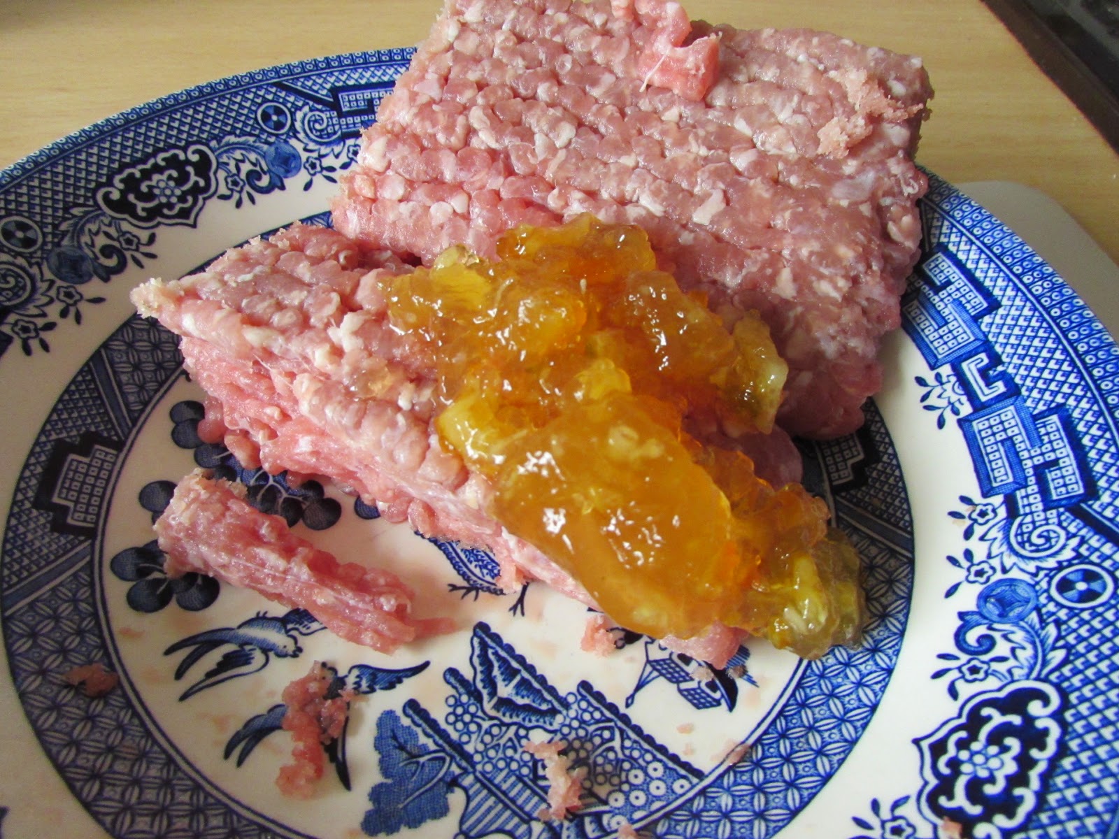 I’ve used Marmalade as a glaze on Gammon before, so I thought it might be an idea to try it in a burger, as long as I get the proportion right, I figure about 15% (37g in 250g of meat) should do it.