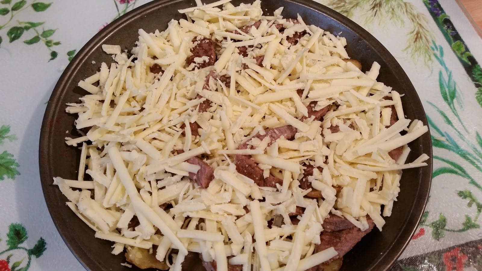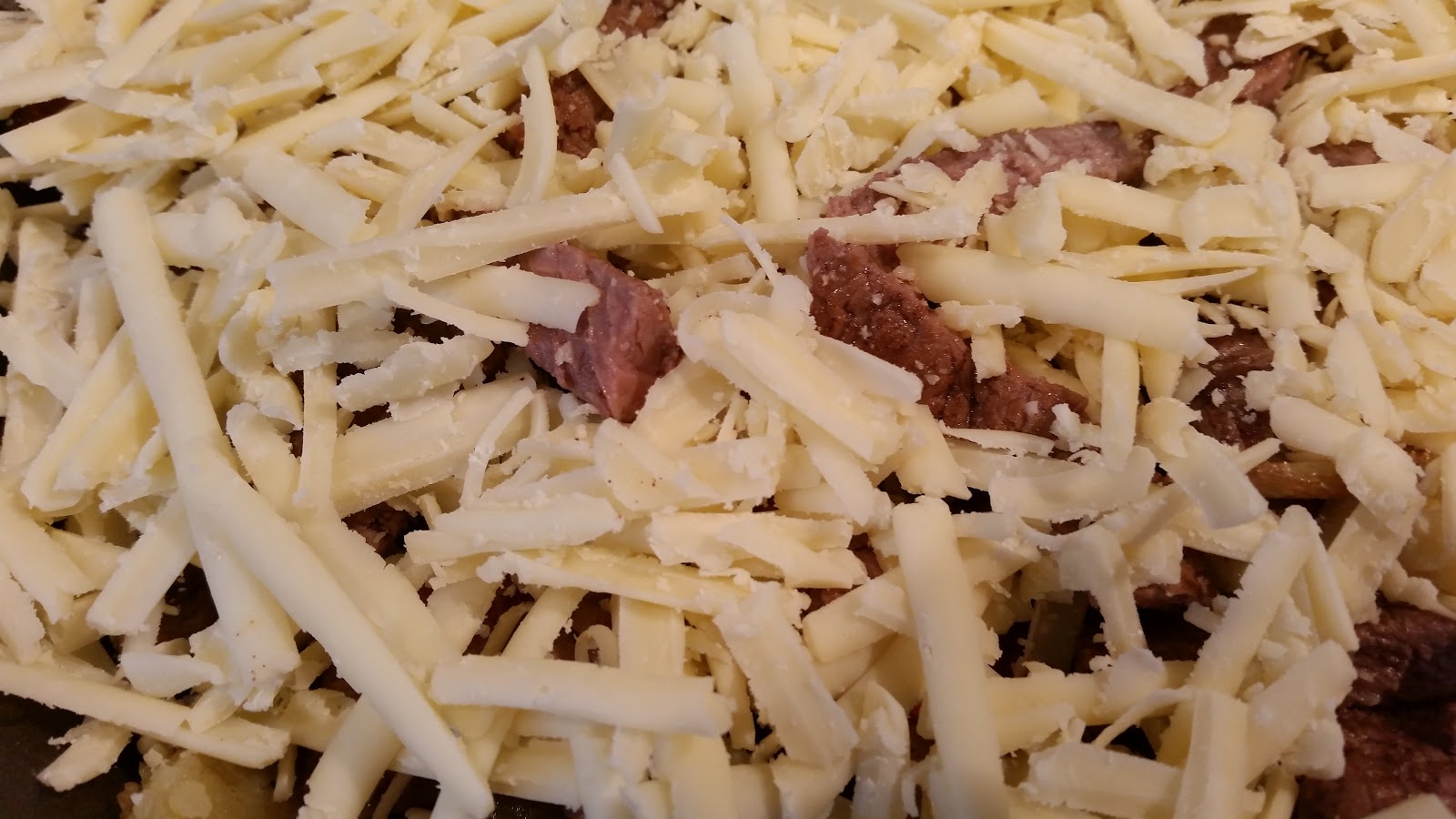The next job is to cover the whole thing with grated cheese, I used strong cheddar.