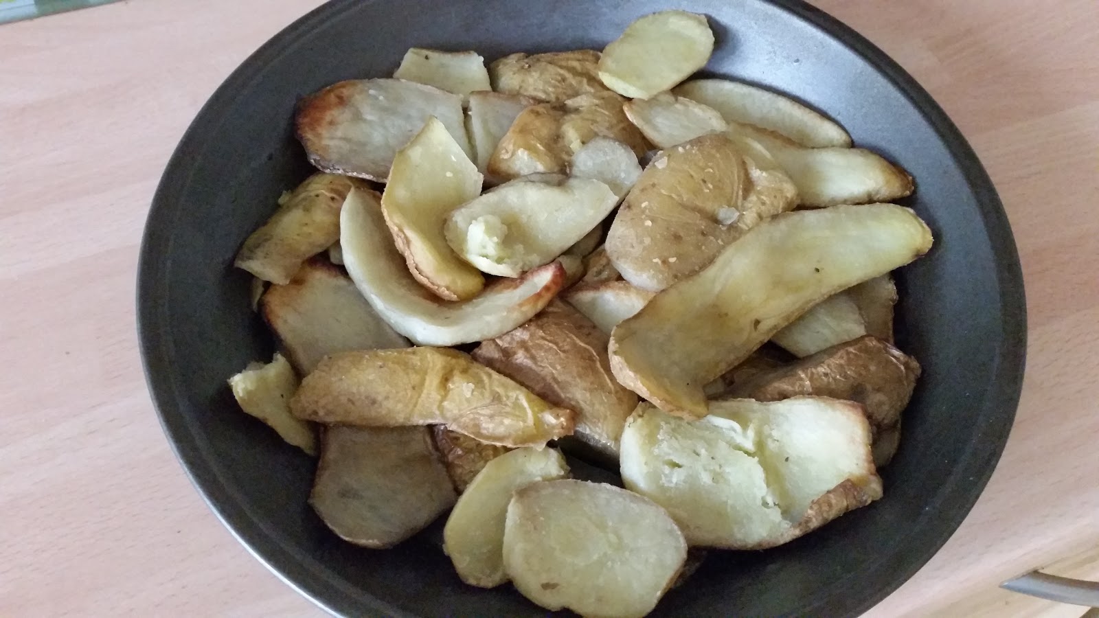 Today I’d like to share my version of a potato nacho idea I spotted on Facebook a while ago. As usual, I have modified it a little.