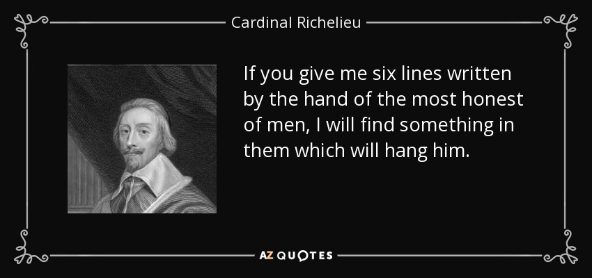8 May 2025 quote-if-you-give-me-six-lines-written-by-the-hand-of-the-most-honest-of-men-i-will-find-something-cardinal-richelieu-24-47-83 by Richard Dee | | 0